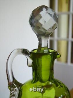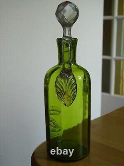 Ancienne carafe à liqueur de la cristallerie de Saint Louis, modèle gravure à l'or fin d'un décor de nénuphars, cristal de couleur vert, non signée, d'époque art nouveau. La carafe est sans choc en bon état, numéroté "28" dans le goulot, hauteur du corps sans le bouchon: 16,5 cm. Le bouchon en verre taillé n'est pas d'origine, il est en bon état. OU PAR TELEPHONE DU LUNDI AU SAMEDI DE 10 H à 19 HEURES. 06 71 85 78 76.